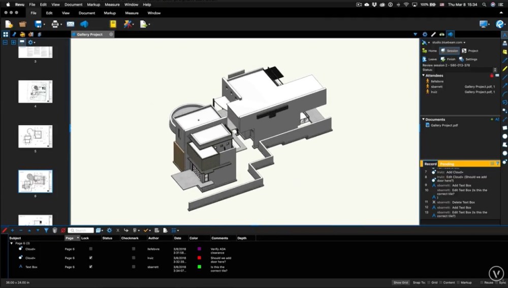 Vectorworks es la primera empresa de software BIM que conecta sus servicios en la nube a través de Bluebeam Studio API, lo que permite a los miembros del equipo del proyecto hospedar, en tiempo real, con anotaciones y sesiones de revisión.