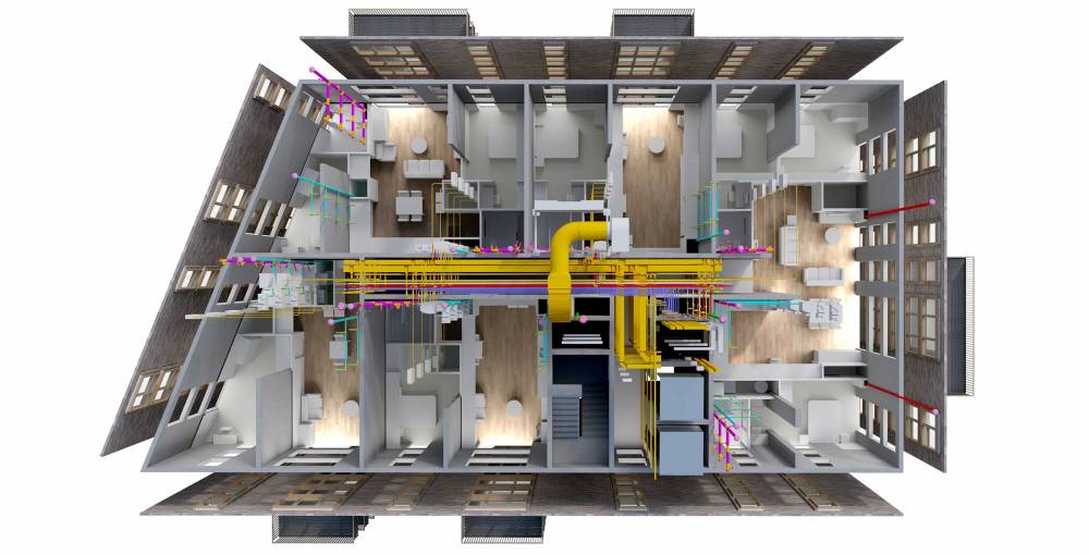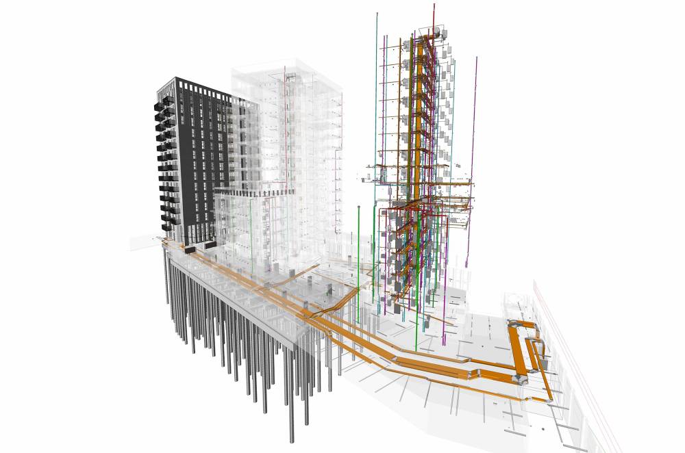 A medida que crecieron sus competencias BIM, la empresa se posicionó bien para uno de sus proyectos distintivos: Pontoon Dock. El desafiante proyecto de uso residencial urbano consta de 154 apartamentos privados alquilados y 82 casas accesibles. También necesitaba navegar por las complejidades del sitio relacionadas con un viaducto fuera de la estación DLR de Pontoon Dock y el Thames Barrier Park. Además, para colmo, necesitaba ejecutarse al estándar BIM nivel 2.