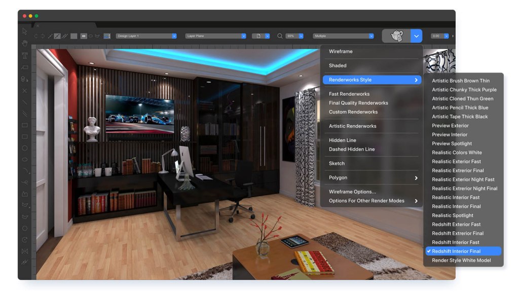 Otras mejoras en esta área incluyen el uso completo de Metal en Mac y DirectX en Windows en el módulo gráfico de Vectorworks, el modo de renderizado Redshift de Maxon y una nueva conexión directa con Twinmotion. Además, el rediseño de las paletas de atributos y de ajuste y el nuevo mapeo de texturas basado en las caras favorecen un proceso intuitivo de creación y visualización de dibujos.