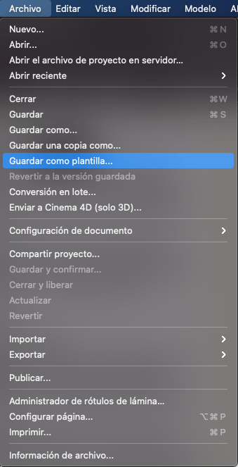 Conversión de un proyecto Vectorworks existente en una plantilla