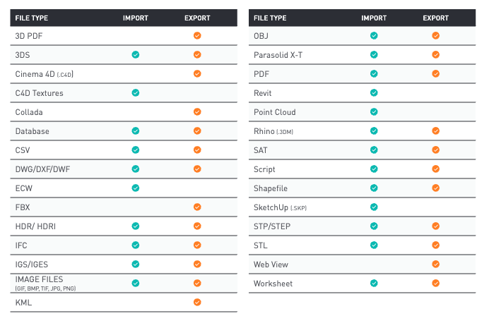 - Puede manejar archivos grandes y modelos complejos: al elegir un software de diseño 3D, hay que asegurarse de que tenga la capacidad de administrar de manera eficiente archivos grandes y modelos complejos sin comprometer el rendimiento ni la estabilidad. La familia de productos Vectorworks admite la más amplia gama de capacidades de importación/exportación posibles e incluye “ Project Sharing ”, un entorno multiusuario que permite a los equipos trabajar juntos en el mismo archivo simultáneamente.