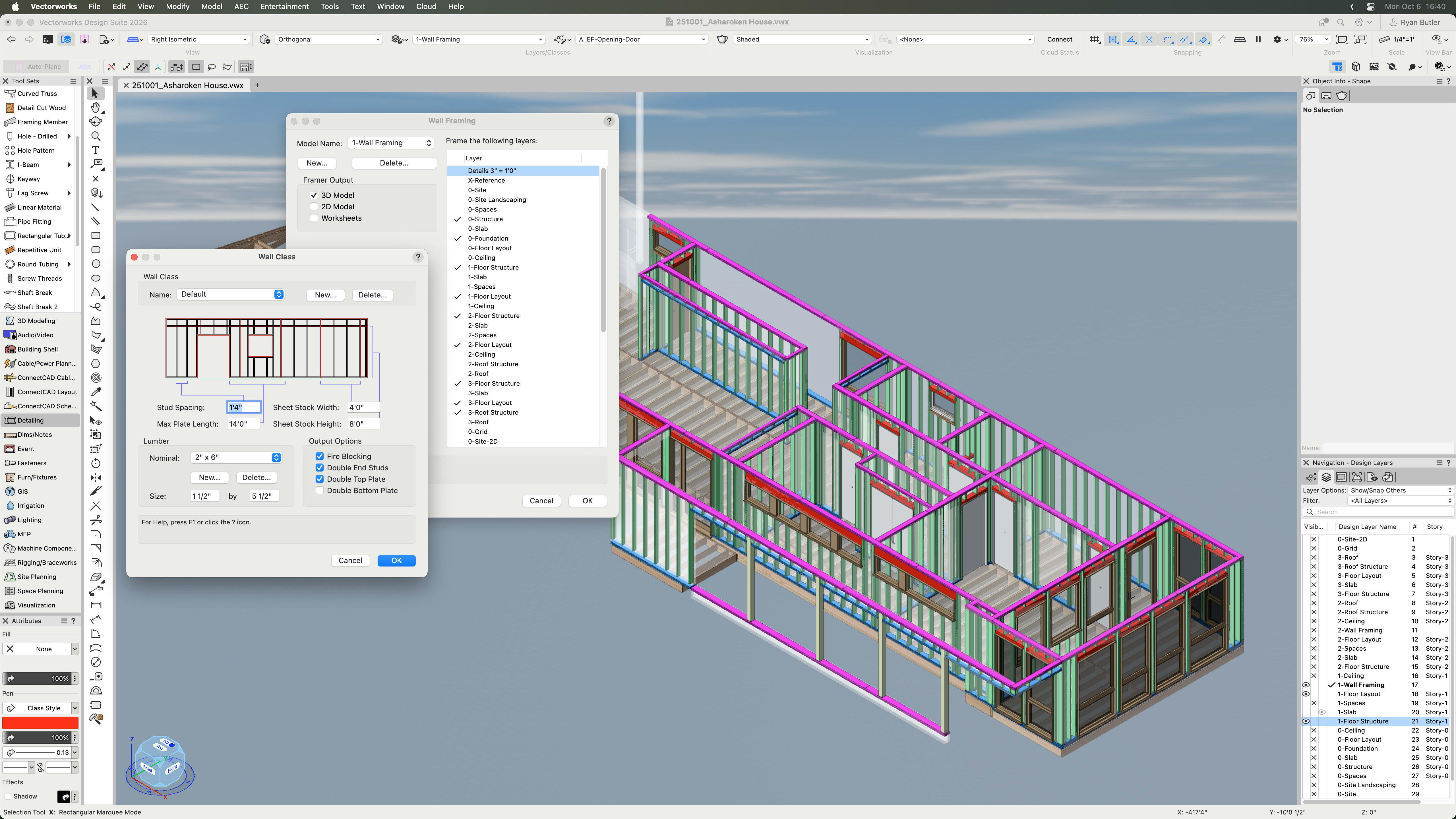 Generar el modelo de estructura: la herramienta crea automáticamente una estructura de pared de madera detallada directamente a partir de la geometría de pared existente.